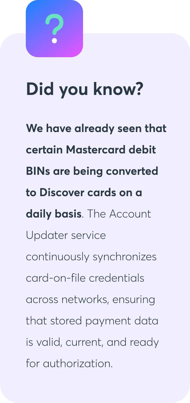 Capital One's network shift to Discover will trigger millions of new card reissues, each carrying a new BIN and routing rules. Subscription merchants that rely on saved payment credentials may face spikes in declines, unless their systems can automatically keep up.